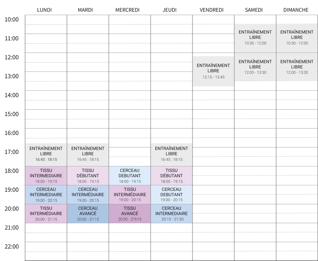 Les cours et entraînements libres sont maintenus pendant les vacances scolaires et les jours fériés.